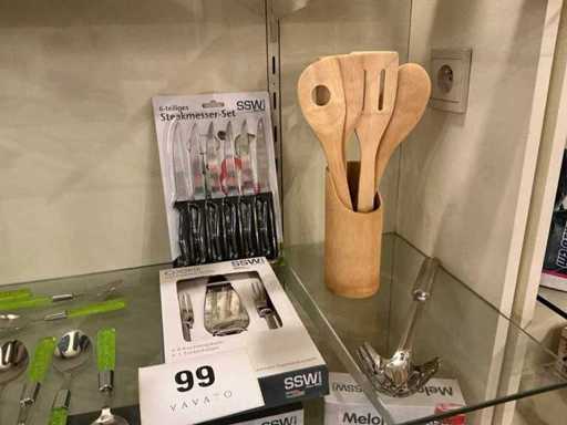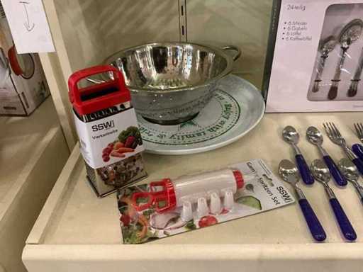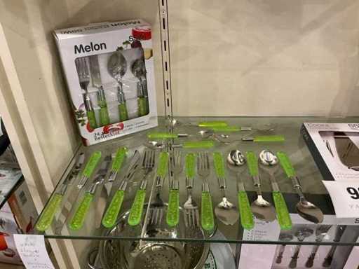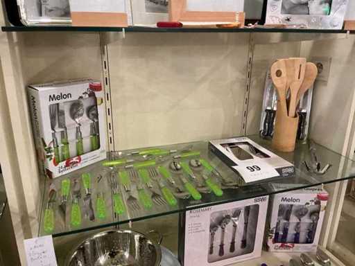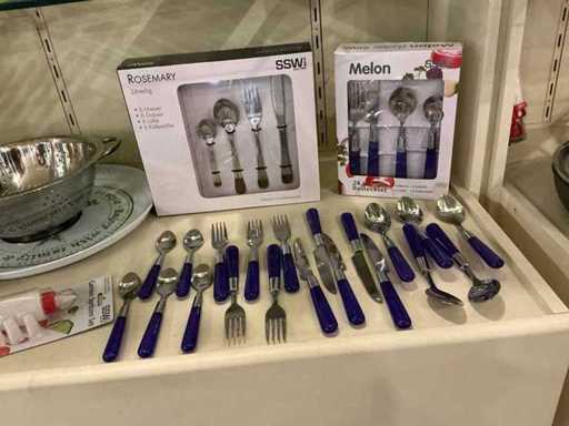 Including 3x 24-piece cutlery set for 6 people, colander, grater, serving plate, cake set, and so on....