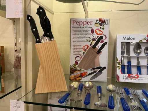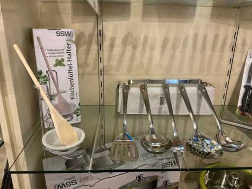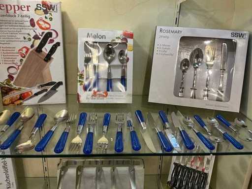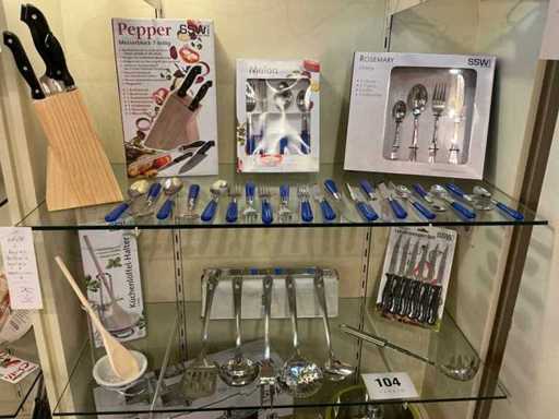 cutlery, knife block, spoon rack... Located on 2 shelves Issue according to instructions