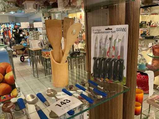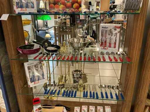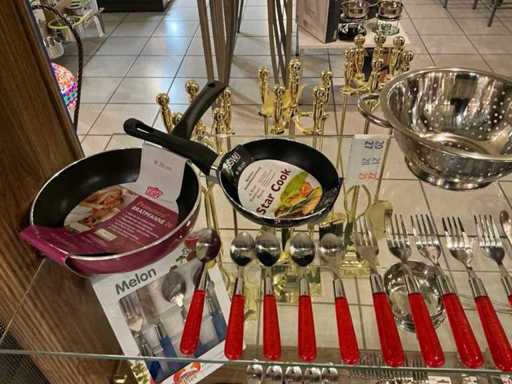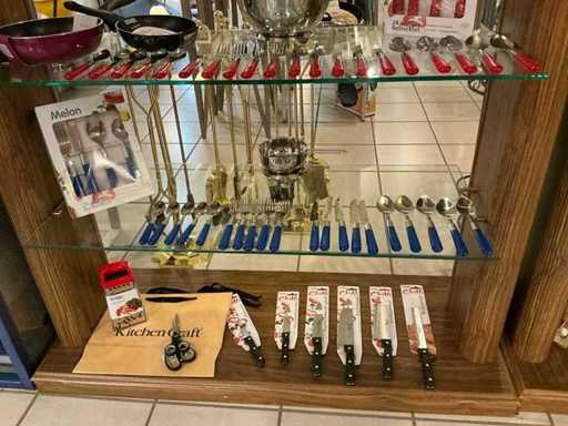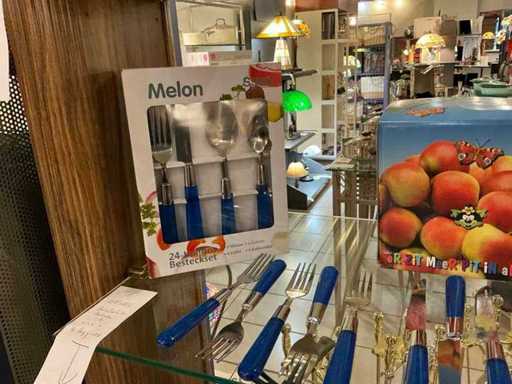 Consisting of 3x 24-piece cutlery set, 1x 6-piece steak knife set, colander, sauce warmer, grater