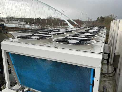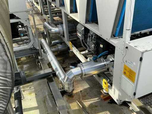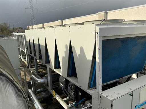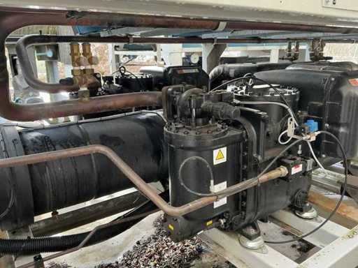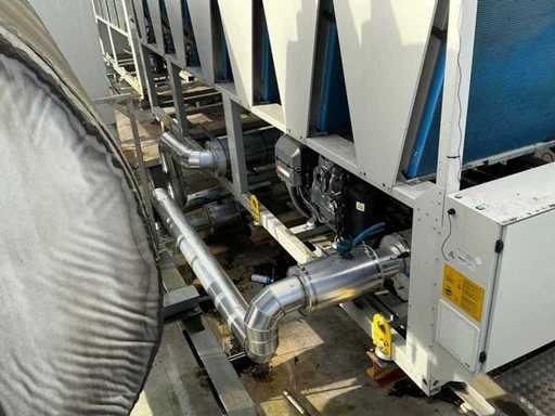 Heavy Cold Water Machine/chiller & heat pump series, air-cooled. Equipped with 2 inverter-controlled screw compressors Daikin and evaporator Provides. Equipped with 14 column units. (= 7 doubles)