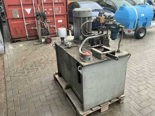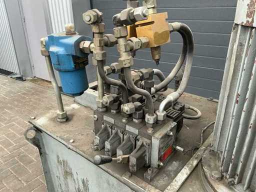 Equipped with: hydraulic unit, pump with motor, Danfoss valve block proportionally adjustable pvg 32, filter unit, pressure gauge, vent,