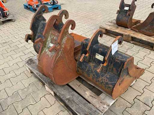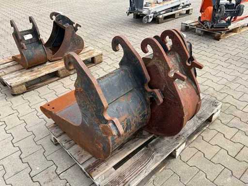 CW05 and CW10; Backhoe bucket 500 mm; CW05 banana tray 270 mm; CW10 Banana Tray 400 mm;