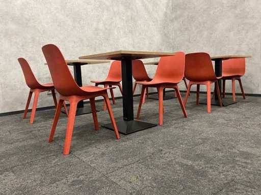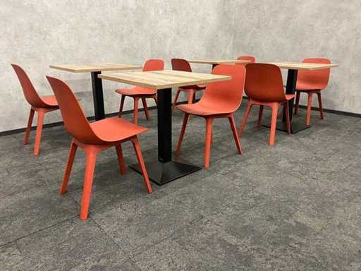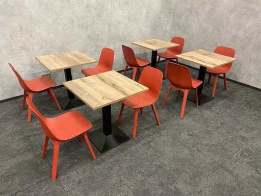 lot consisting of 4x De Arend table. Dim. approx. hxbxd 75x70x70 cm. -- 8x Ikea plastic assorted chair