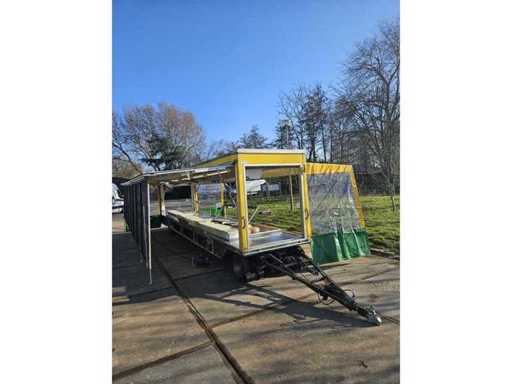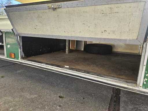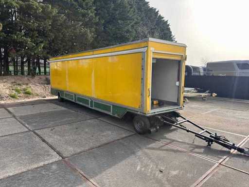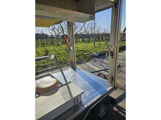 Equipped with: Towbar coupling, dummies of cheeses, rear with chalkboard, 2x windshield, mover with remote control, lighting, flap with gas springs, sockets, roller shutter front and rear, meachinsch braked, spare tire, storage space