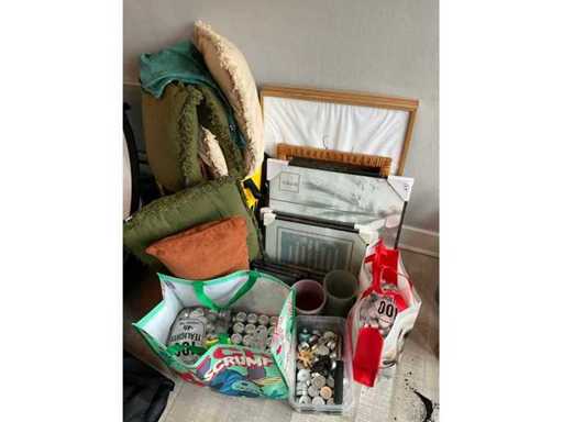 7 decorative pillows, 11 various frames, mirror, party tea lights and vases