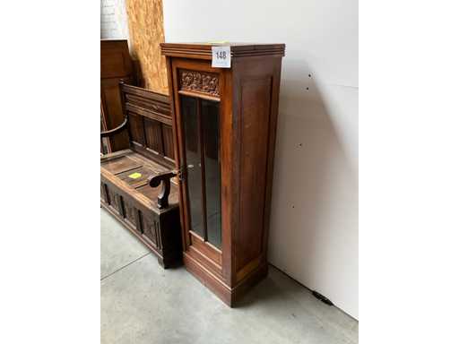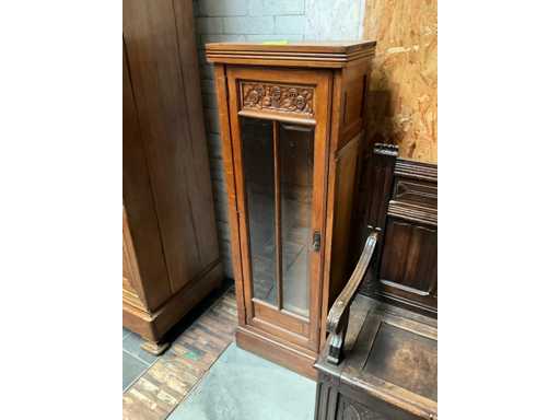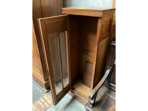 Consisting of 2x 1 door wooden antique display cabinet, 1x left and 1x right opening door