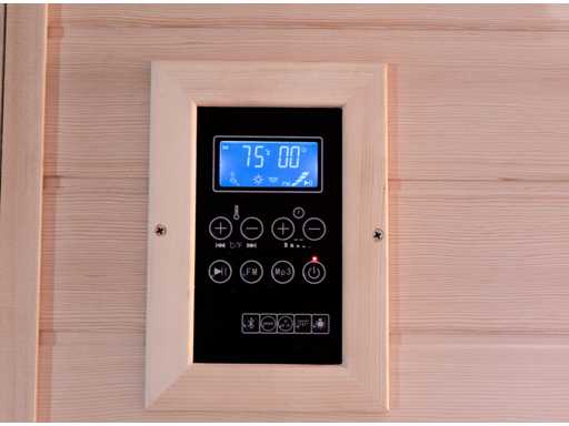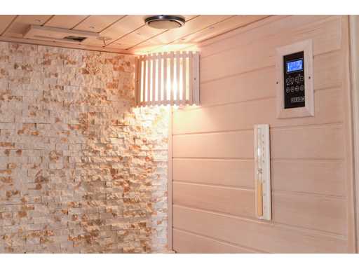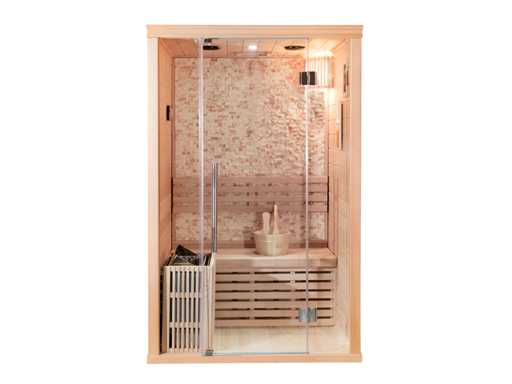 Comfort, 02, wood type: Canada hemlock, with led mood lighting, full glass front 8 mm safety glass, stainless steel heather and digital controller, thermometer and hygrometer, glass timer, lava stone, suitable for 1-2 people, Exclusively composed of the best materials, dimensions: 120x105x190cm (l x w x h). New