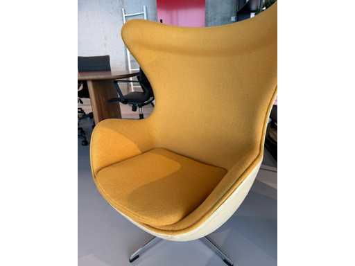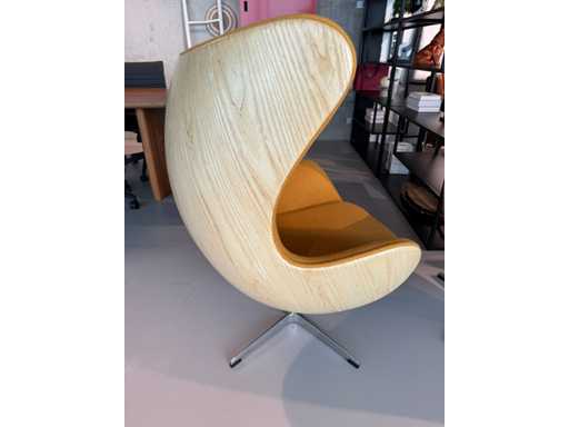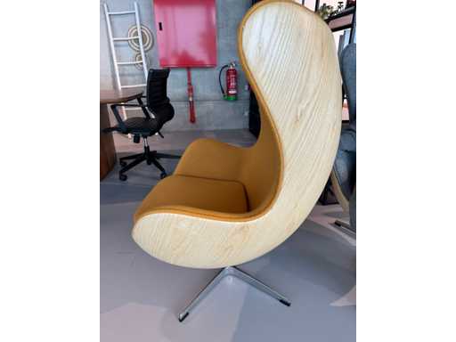 Egg Chair Yellow Cashmere and Wood Veneer (1x)