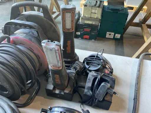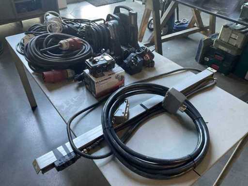 Including: 32A three-phase current, 3x 230V reel, machine control cable, 2x Beta battery hand lamp, hand lamp, 1x Maginon security camera