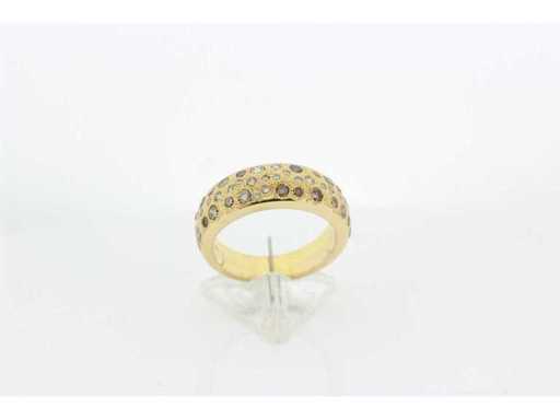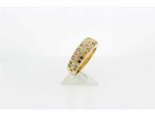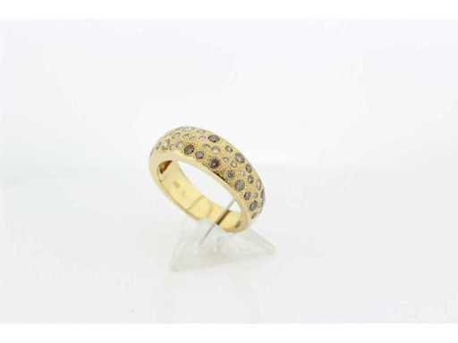 New and unused. 18 karat yellow gold convex ring set with 48 brilliant cut diamonds with a weight of 1.44 ct, Color G and quality VS. Including a ring box and a valuation report with an insurance value of € 3795,-- issued by a qualified appraiser. Gemstone: Natural diamond