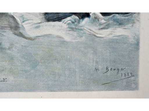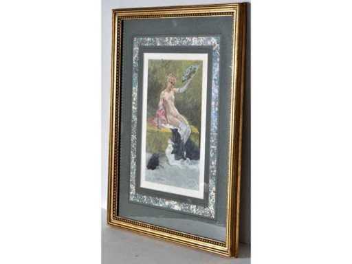 Reproduction after Félicien Rops, Canicule (1882). Depiction of a seated figure with fan in summer setting, with title in the picture plane - Signed in print - professionally framed