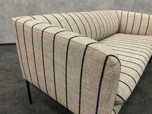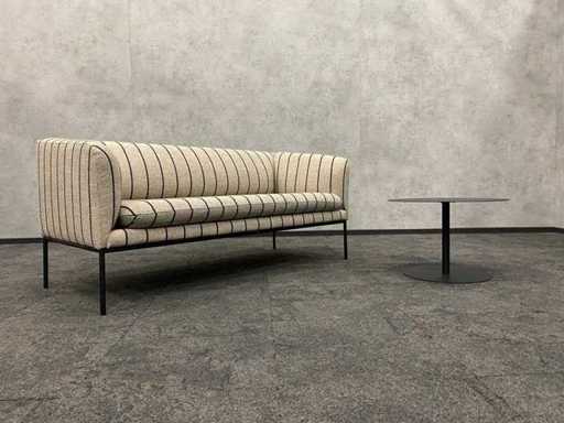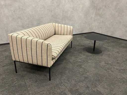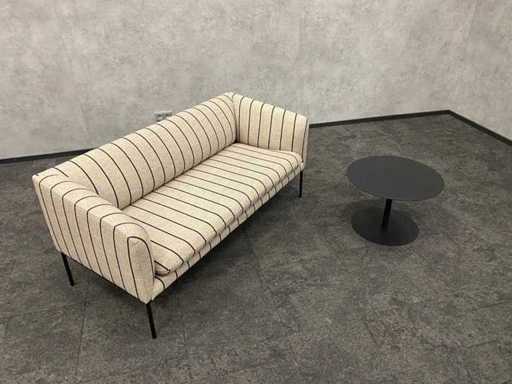 Dim. Sofa approx. HxWxD 74x160x74 cm. --- Dim. Metal coffee table approx. height 40 cm. and diameter 60 cm.