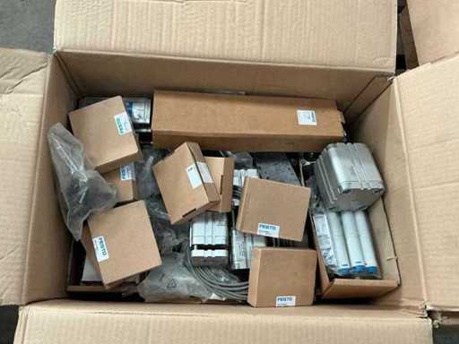 ADV-20-10 - short-stroke cylinder 20x; MUP-32 - center support 18x; DHPS-25-A-NO - parallel gripper; YSR-25-40-C - shock absorber 2x; SVS-4-1/8 - valve for panel mounting 4x; AEVC-20-5-I-P-A - short-stroke cylinder 11x; VL-5/3G-3/8-B - pneumatic valve 2x; HGL-1/4-B - controlled check valve 9x; ADVU-50-25-P-A - compact cylinder 2x; DFM-50-PA:FR 03-2015 - set wearing part 8x; DZH-32-40-PPV-A - flat cylinder 2x; DFM-50-50-P-A-GF - Guide cylinder; LRMA-QS-4 Pressure Control Valve 7x; ADVUL-50-20-P-A - compact cylinder; ADVU-63-50-P-A - compact cylinder; MFH-5/3-E-1/4-B - solenoid valve; JMFH-5-1/4-B - solenoid valve; VN-20-L-T6-PI5-VI6-RO2 - vacuum generator 2x; LRP-1/4-0.7 - precision pressure control valve; LRMA-QS-6 - pressure regulator 4x; CPE14-M1BH-3GL-1/8 - solenoid valve 2x; LRP-1/4-2.5 - precision pressure control valve; JMFH-5-1/4 - solenoid valve; VL/O-3-1/8-B - pneumatic valve; ADVU-40-15-P-A - compact cylinder; HEE-D-Maxi-24 - switch-on valve; ADVUL-12-20-P-A - compate cylinder; DZF-25-40-A-P-A - flat cylinder; MFH-5-1/4 - solenoid valve; MOFH-3-1/4 - magic valve; MFH-3-1/4 - mangeet valve; HEE-D-MIDI-24 - switch-on valve; MFH-5-1/8 - solenoid valve; MFH-3-1/8-S - solenoid valve; LRMA-QS-8 - pressure regulator 2x; LFR-D-MIDI H643 16bar - filter regulator unit; DNU-32-80-PPV-A - ISO cylinder; HE-3/8-D-MIDI - switch-on valve; MSFW-230-50/60-OD - solenoid coil 6x; V/O-3-1/8 - pusher valve; AV-32-10-A - short-stroke cylinder; SNCB-100 - swivel flange; LRMA-1/8-QS-6 - pressure control valve; MSFG-24/42-50/60-DS - magnetic coil 2x; LN-100 - bearing block; GRO-1/8-B - Throttling valve; GR-1/8-B - throttling valve with non-return valve; LR-1/8-G - pressure regulator; MSFW-230-50/60 - magnetic coil 2x; PEV-1/4-WD-LED-24 - Right angle socket; LRVS-LRP-1/4;