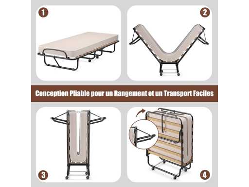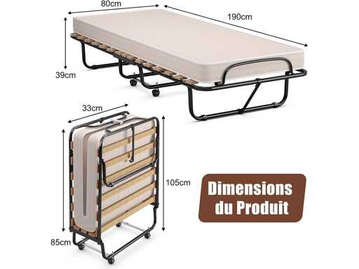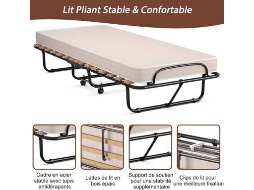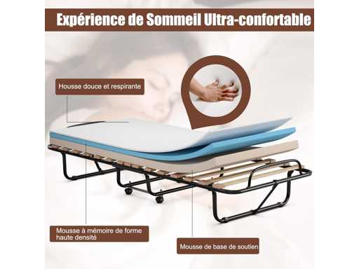 Folding Bed 1 Person Mattress 80x180CM, Adult Folding Bed with Memory Mattress 10 cm