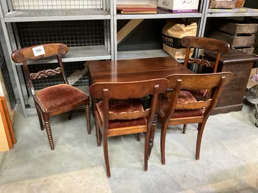 Foldable up to 40 cm, equipped with 4x wooden chair with fabric seat