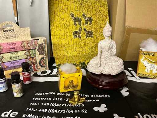 incense sticks, incense burners, fragrance bottles, mirrors, buddha, and so on..... j