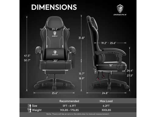 Advanced Spring Cushion Technology: Provides sofa-like comfort that conforms to your body. Optimized seat: The wingless design allows for freedom of movement. Ergonomic design: oversized headrest, built-in massage, and back storage pouch. Adjustable comfort: The backrest adjusts from 90° to 145° with extendable footrest and stable gas spring.