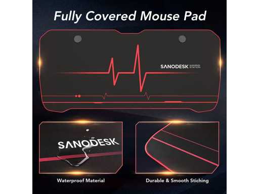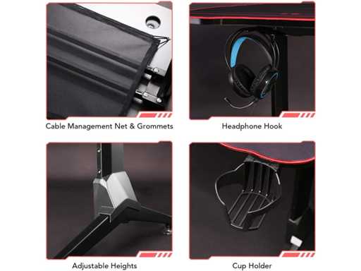 4. Practical Accessories: Our desk is extremely feature-rich. A fully covered non-slip mouse pad is made from durable 3mm thick silicone that is custom designed for a perfect fit. With a handy cup holder and headphone hook, your gaming experience is extraordinary