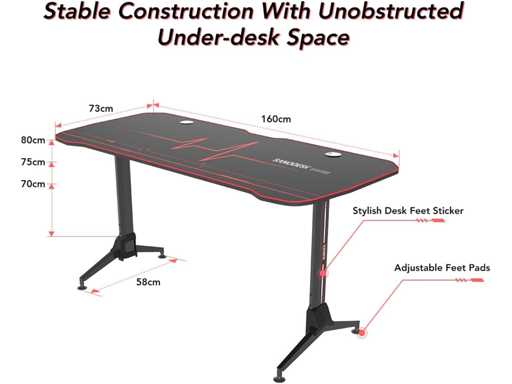 1. Large Gaming Space: The FlexiSpot gaming desk features a 160 x 73 cm eco-friendly top that can easily hold up to three screens and other essential equipment to support your fierce battle. The table is made of T-shaped steel for better stability. Maximum load: 80 kg