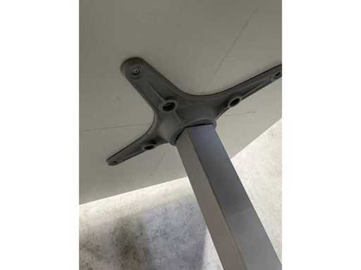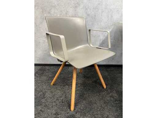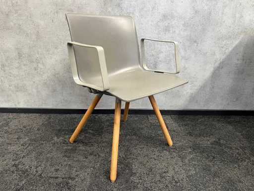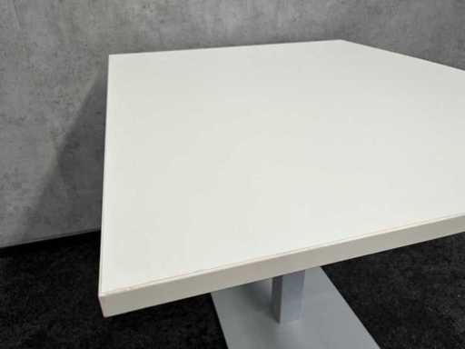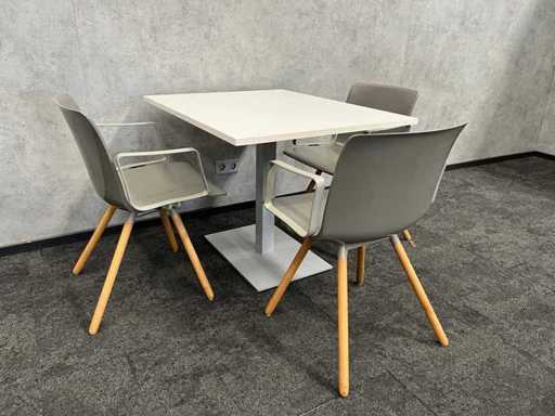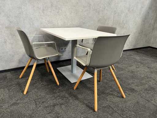 lot consisting of 3x Gispen Nomi design chair. Design by Just Meijer. -- 1x table with white melamine top and gray steel frame. Dim. Table approx. HxWxD 74x80x100 cm.