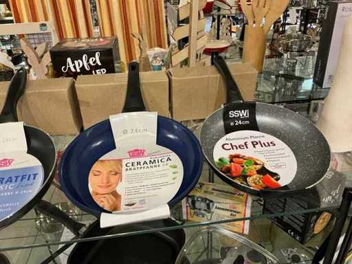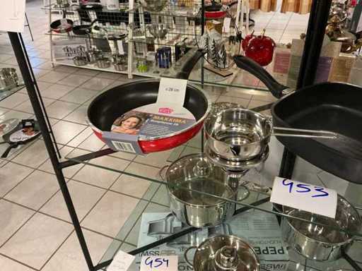 6 x pan including 1 x sauté pan 28 x 28 cm with glass lid, 1 x sauce bowl with warmer