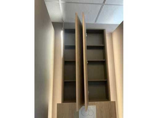 consists of 2 storage cupboards with shelves and 2 doors,