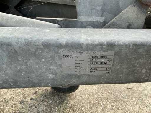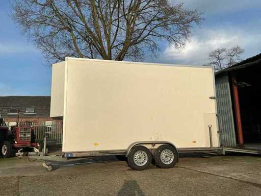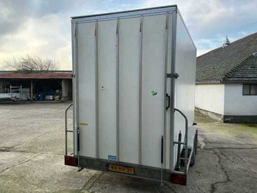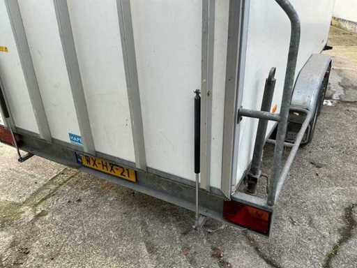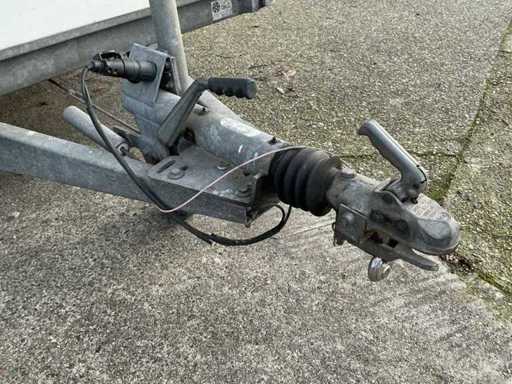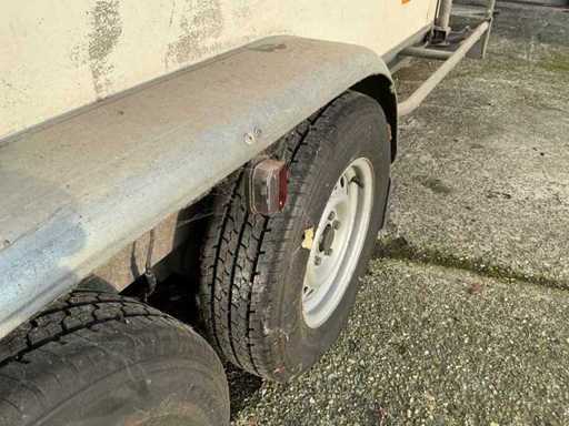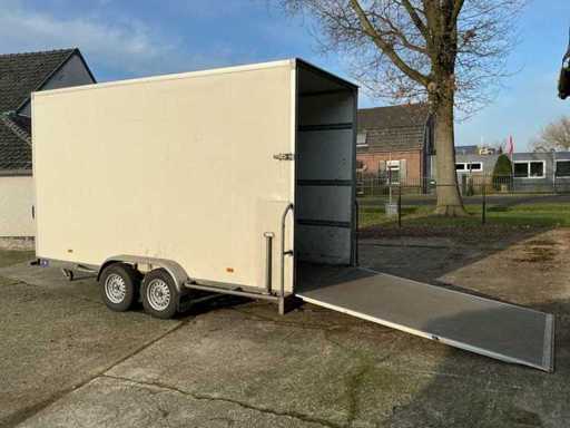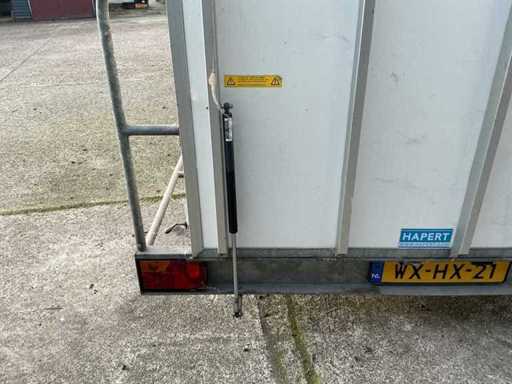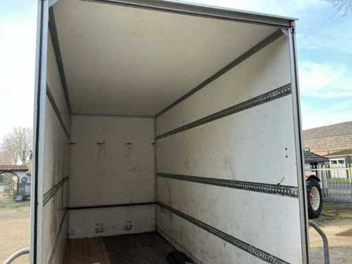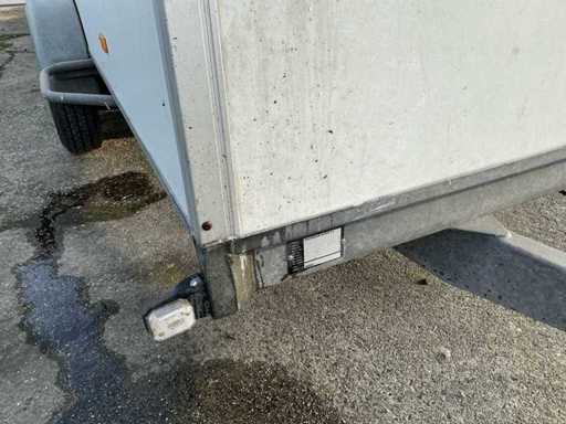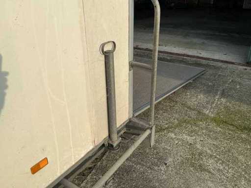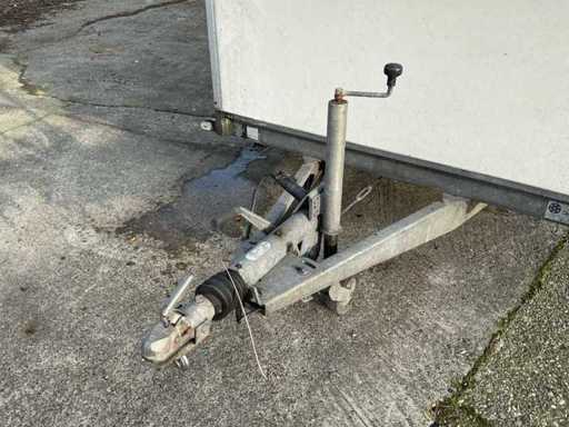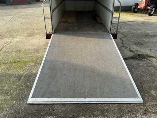 Equipped with: long ramp 1800x2500 with anti-slip and gas springs, lighting, new tires, closed body, solid valve closures and hinges, metal mudguards, jockey wheel, shunting handle, cargo rails, low cargo floor, outrigger legs rear, storage space/spoiler above aluminum drawbar, overrun brake and handbrake.