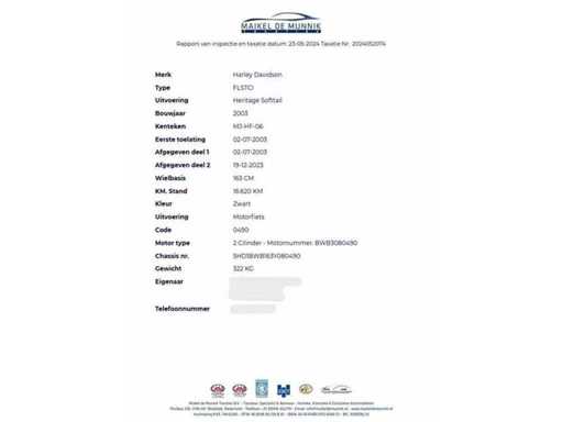 This Harley Davidson FLSTCI Heritage Softtail comes with original documentation such as registration documents. This vehicle is completely original and damage-free. This Harley Davidson FLSTCI Heritage Softtail is both technically and cosmetically in good and well-maintained condition with normal signs of wear and has been well and expertly maintained. This Harley Davidson FLSTCI Heritage Softtail, built in 2003, was delivered new in the Netherlands at the time.
