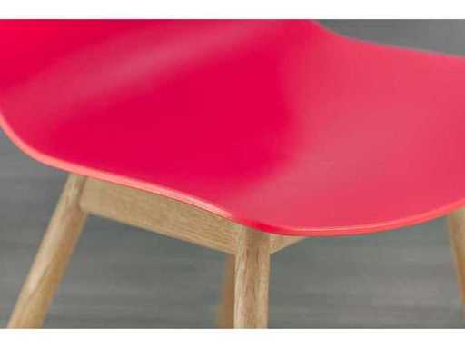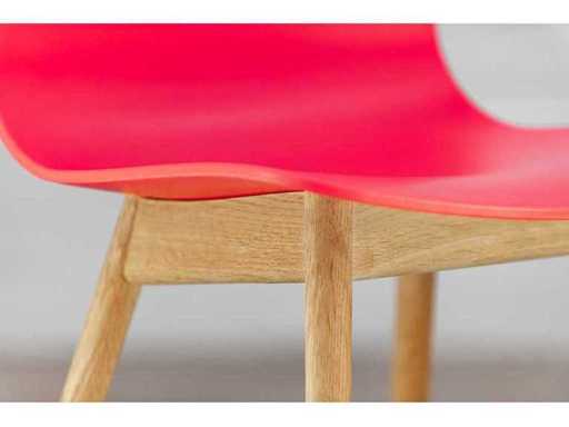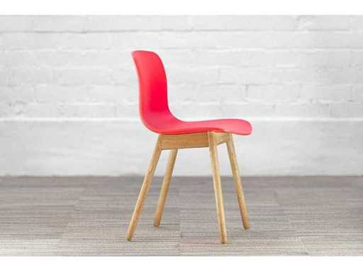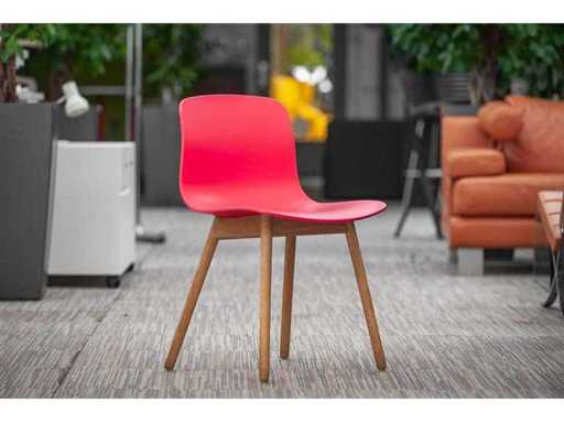 Design chair from the well-known About A Chair collection by HAY. This AAC 12 version combines an ergonomically shaped plastic shell in a soft pink tone with an elegant wooden base.
