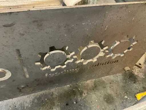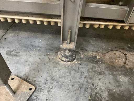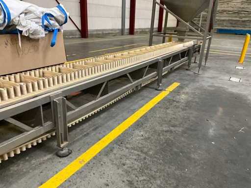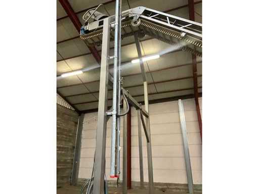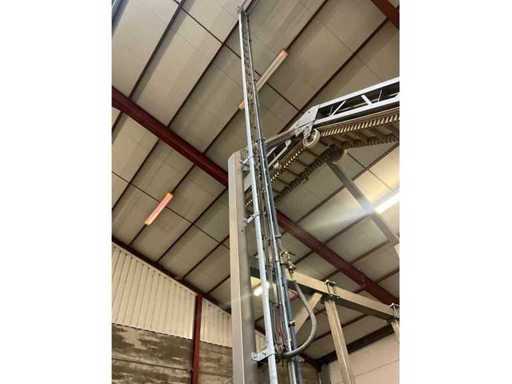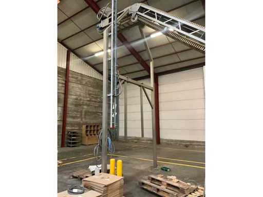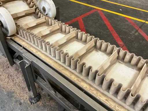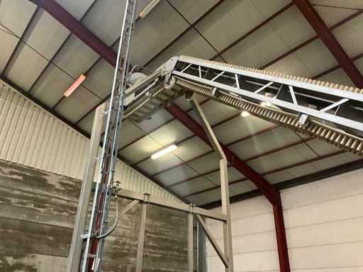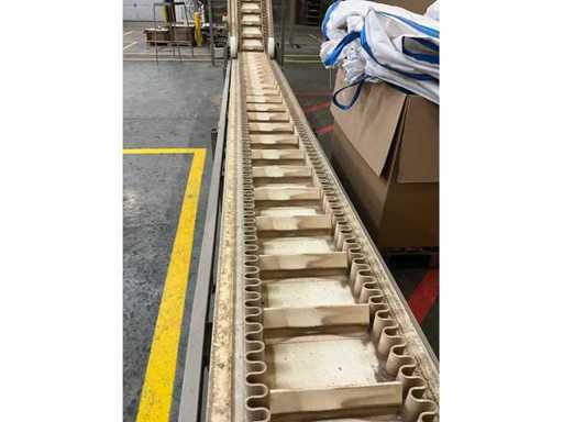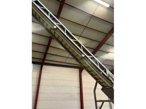 Plastic Z-conveyor belt of which with a width of 55 cm, approximately 6 meters high and a total of 16 meters long,