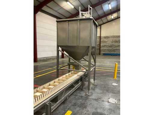 hopper bucket 132 x 112 cm and 260 cm high with attached ladder.