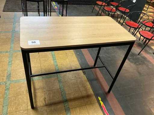 Equipped with wooden top and metal base, dimensions approximately 130 x 70 x 105 cm