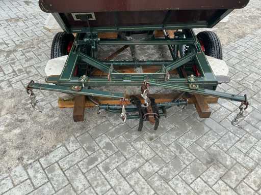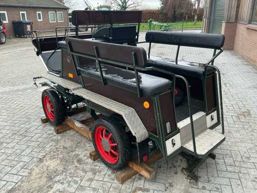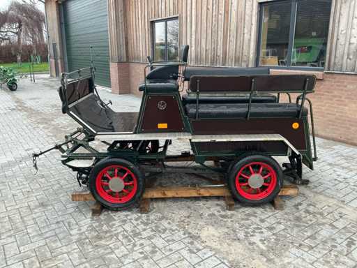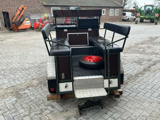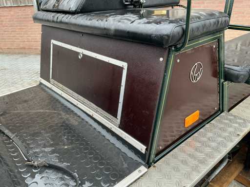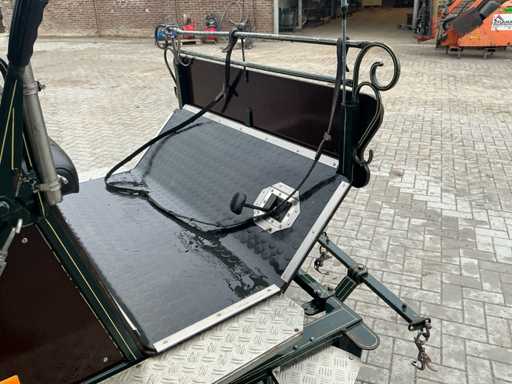 Equipped with: Brand: single and Two-in-hand, wheel size 135/70R15, front and rear braked, front and rear suspension, storage bins under front seat, rear seats 120cm, trestle seat height approximately 1300mm, track width 1300, color: dark green, handbrake, benches with backrest, adjustable drawbar, aluminum anti-slip steps, reflectors, foot brake, raised seat cushion.
