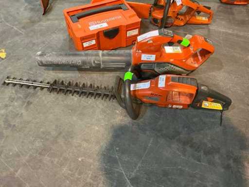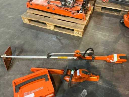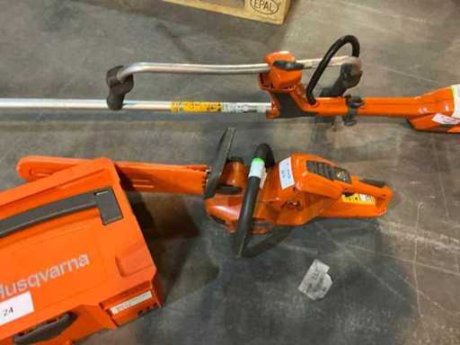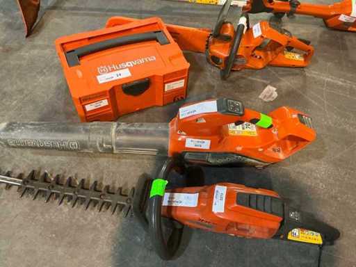 Consisting of: Battery pack (2 batteries incl. charger), 2022 Husqvarna 520iRX Roadside mower , 2018 Husqvarna 536LiHD60X Hedge trimmer 60cm , 2017 Husqvarna 436LiB Leaf blower battery, 2018 Husqvarna 536LiXP Chainsaw - 35cm.