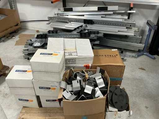 Equipped with: storage boxes without contents, bird blockers, esdec wave adapters, copel pieces, corrugated iron clips, steel box profile, end caps, roof hooks, other installation material (for solar panels)