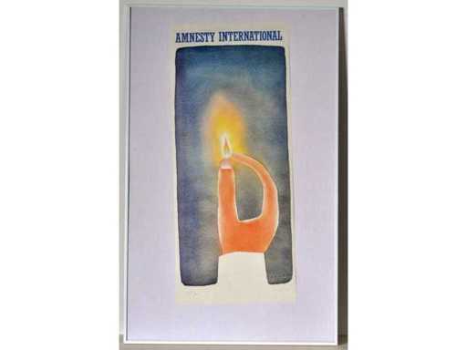 Limited edition for Amnesty International. Symbolically hand and flame, referring to hope and human rights - collector's item by an internationally acclaimed Belgian artist - There is also an unsigned poster of this design, but this is the rare signed and numbered art print on quality paper