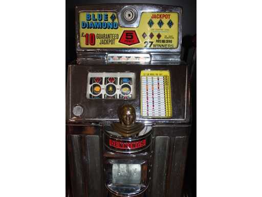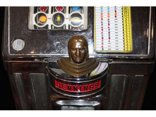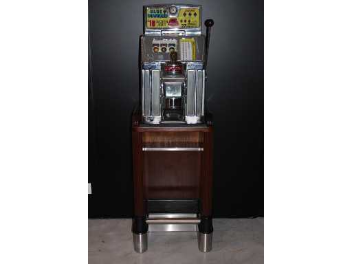 mechanical one-armed bandit, works on 5 euro cents and also pays it out, with jackpot, bronze indian cup, exclusive casino stand