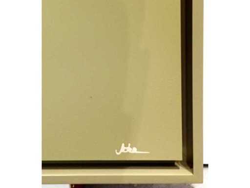 Colourful composition - professionally framed in frame - gallery price: 2.000 € - Joke Debeuckelaere graduated from the University College Ghent (KASK) Visual arts - Graphic design. The portraits based on acrylic are characterized by the pronounced colors and the exceptional technique. Joke casts her paintings into shape. The designs for these paintings are designed in a computer-based graphics program. And then transferred to an mdf panel, where the paint is poured in layers and this creates a relief. Only in the final finishing phase does a brush come into play.