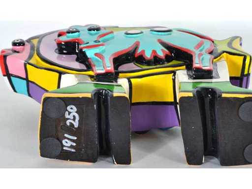 Colorful object in the original box - Joop Hansen's artworks, crafted from a high-quality resin composition, are vividly depicted in its summery colors. They have become a means of depicting his vivid fantasy entirely in 3D. The double-sided images are different on both sides. They also come with a colorful trendy packaging and are therefore ideal as a gift.