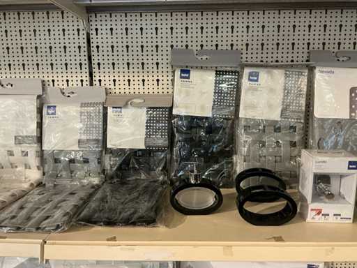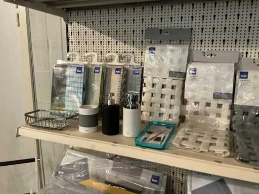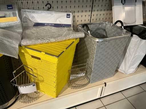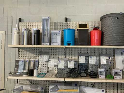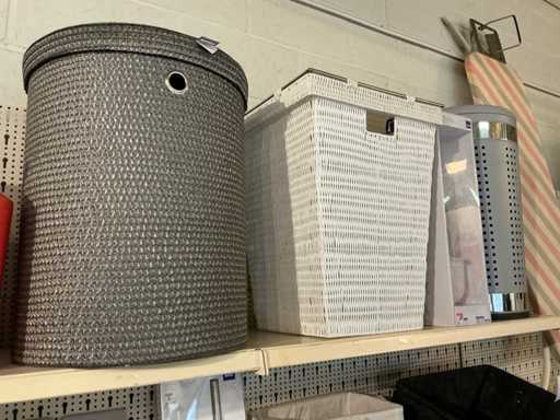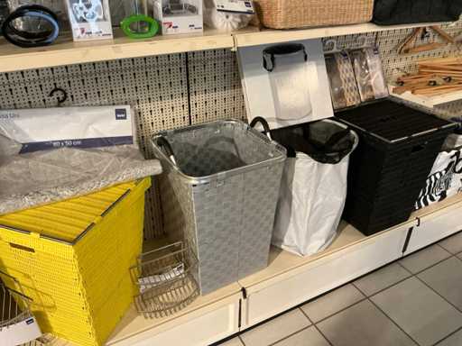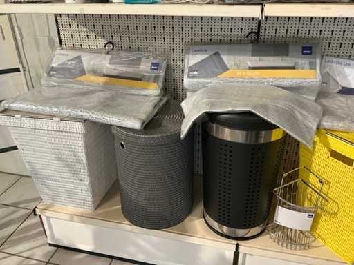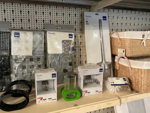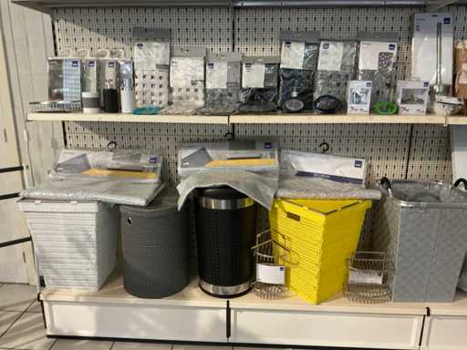 Including 10 different laundry baskets, 3 different fabric and wicker baskets, soap holders, toilet brushes, bath mats, soap dispensers, pedal bins,..