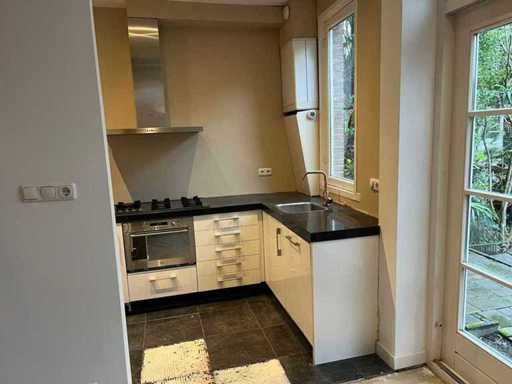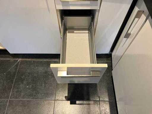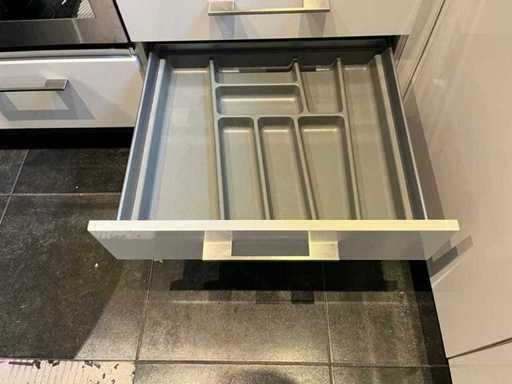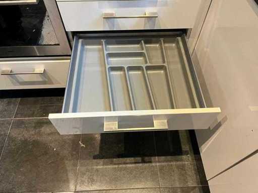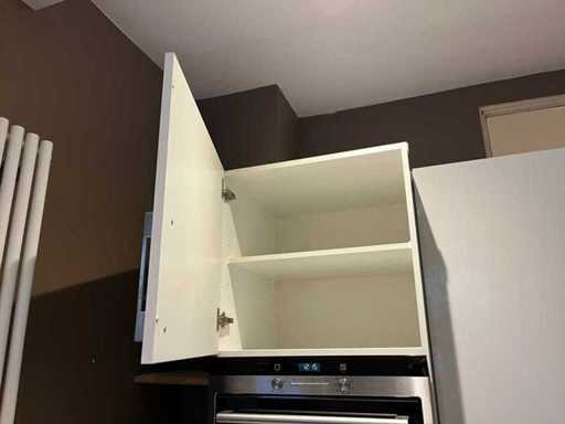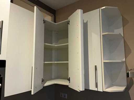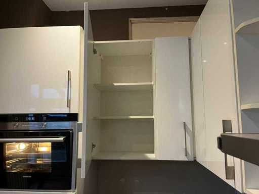 Condition: used; dimensions left part approximately 170x60x220 cm; dimensions middle part approximately 327x60x90 cm; dimensions right part approximately 182x60x90 cm; already disassembled and packed on pallets. (stacking, exchange or deposit per pallet); Pallets are not included; pay a deposit when picking up, or stack pallets; Worktop not packed on pallets (25-2DE-03118)