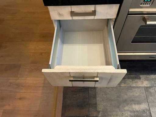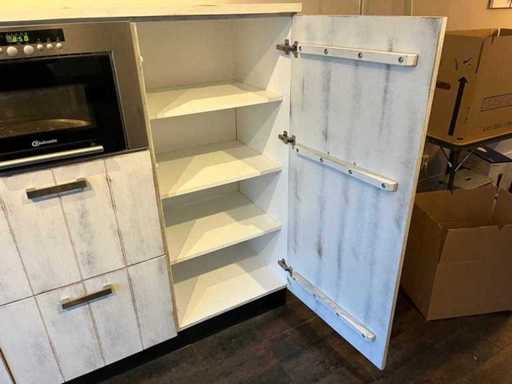 Condition: used; dimensions cabinet wall approximately 181x58x142 cm; already disassembled and packed on pallets. (stacking, exchange or deposit per pallet); Pallets are not included; pay a deposit when picking up, or stack pallets; Worktop not packed on pallets (25-2DE-02910)