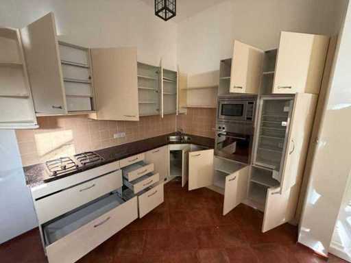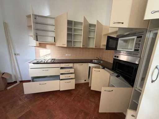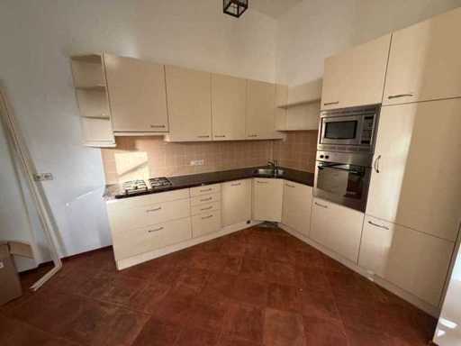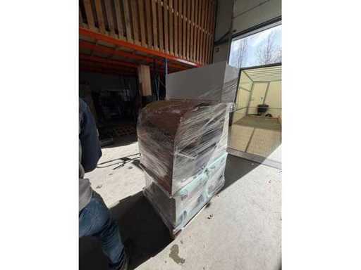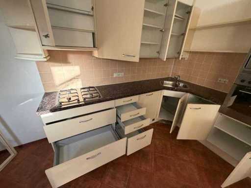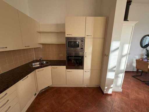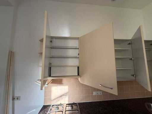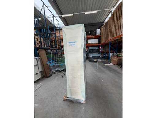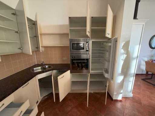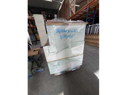 Condition: used; dimensions left part approximately 287x60x90 cm; dimensions right part approximately 264.5x60x220 cm; already disassembled and packed on pallets. (stacking, exchange or deposit per pallet); pallets are not included; pay a deposit when picking up, or stack pallets; Worktop Not Packed on Pallets (26-RTT-04425)