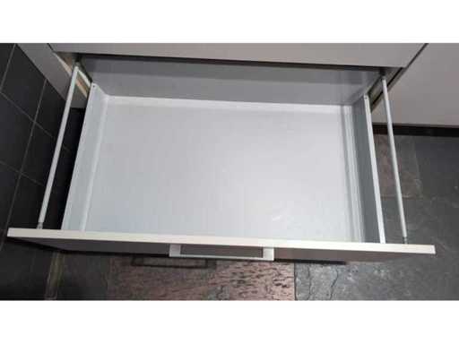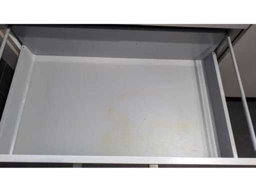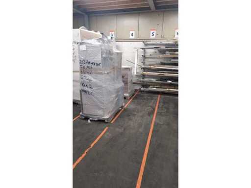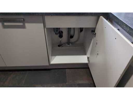Condition: used; dimensions left part approximately 263x60x90 cm; dimensions right part approximately 185x60x180cm; already disassembled and packed on pallets. (stacking, exchange or deposit per pallet); Pallets are not included; pay a deposit when picking up, or stack pallets; worktop not packed on pallets (26-2DE-03116)