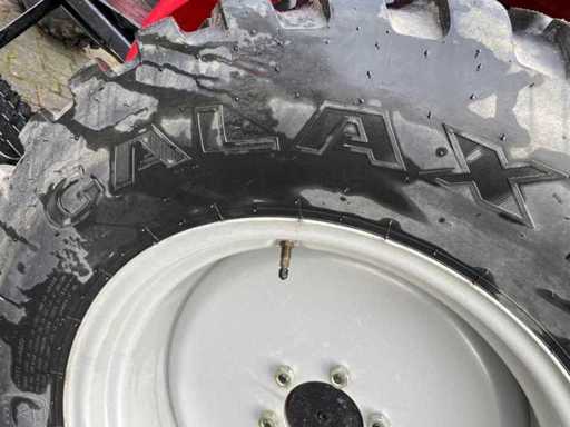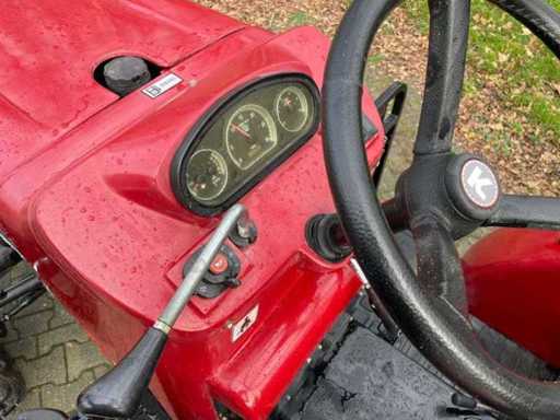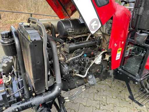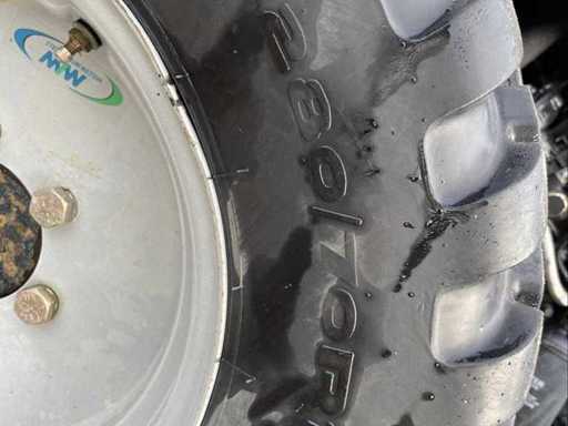 Equipped with: 40 hp, CE mark, power steering, 2 double-acting spool valves, work lights, 4WD, dimensions LxWxH 351 x 161 x 230 cm, axle width rear 140 cm, axle width front 120 cm, wheelbase 181 cm, ground clearance rear 140 cm, ground clearance front 40 cm, empty weight 2155 kg, turning radius 320 cm, speed forward 1 km min / 25 km max. speed reverse 1 km min / 25 km max, PTO rpm 540 / 1000, lawn tires, front weights, ROPS bracket.