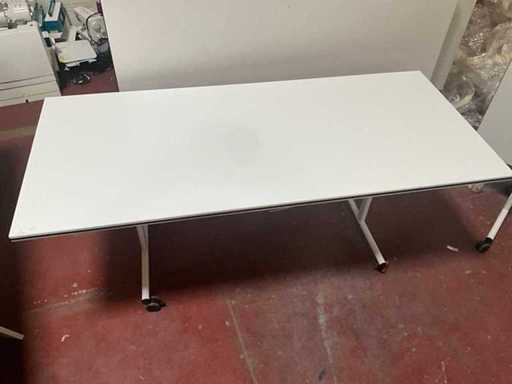 Modular conference table, tiltable and on wheels.