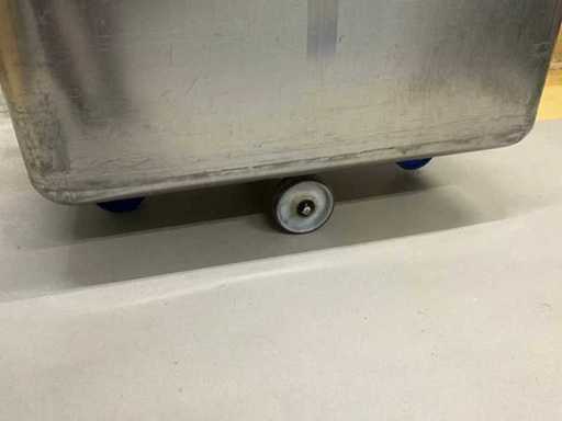 Equipped with 4 fixed wheels. And with handle.