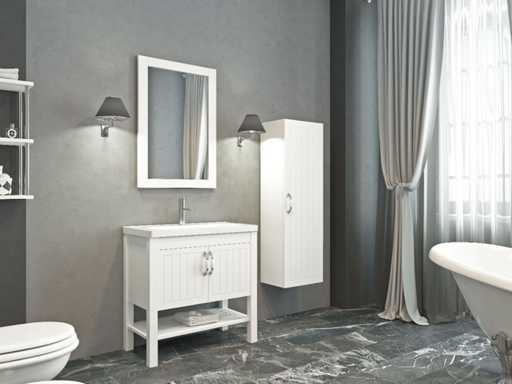 The undermount cabinet of the bathroom furniture is equipped with a soft close system - faucet, crepin, siphon and column cabinet not included