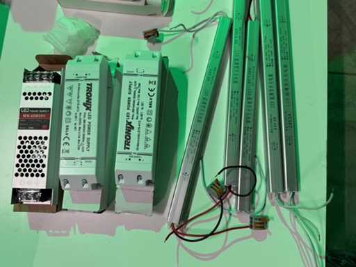 Total length 260 meters - 2700 K - 24 Volt - including 8x 5 meters 15 W (40 lpm) and 44x 5 meters 9 W (220 lpm) - including half sets, various transformers, lot is with all couplings connectors, COB led angle, cross and t-connection pieces, drivers dimmers, etc.