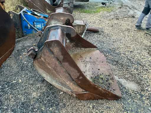 Excavator bucket in used condition.